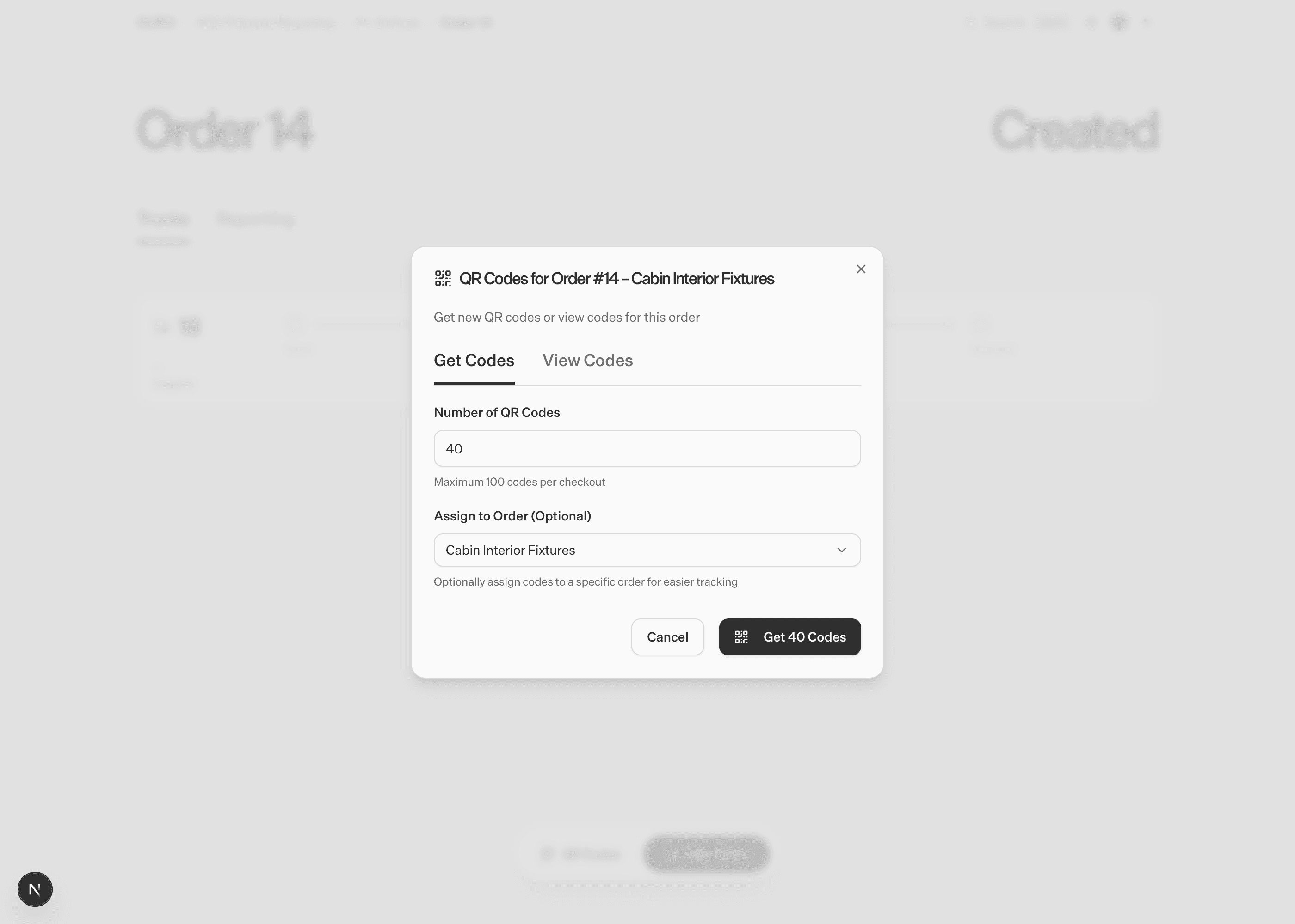 You can also generate order specific codes on the page for a particular order or a truck in an order.